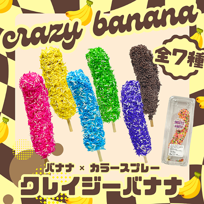 人気ランキング5位は、見た目も楽しいクレイジーバナナ。視覚的なインパクトと手軽な美味しさで人気を集めています。新鮮なバナナを丸ごと一本使用し、濃厚なチョコレートでコーティング。その上からカラフルなカラーチョコスプレーを贅沢にまぶしました。全7種類の個性豊かなカラーバリエーションは、選ぶ楽しさを提供し、パーティーやお祭り気分を盛り上げます。